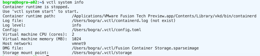 So what is vctl ? well it is the cli interface that drives VMware Fusion to push, pull and natively run docker and oci-compliant container images and kubernetes clusters on developer workstations.